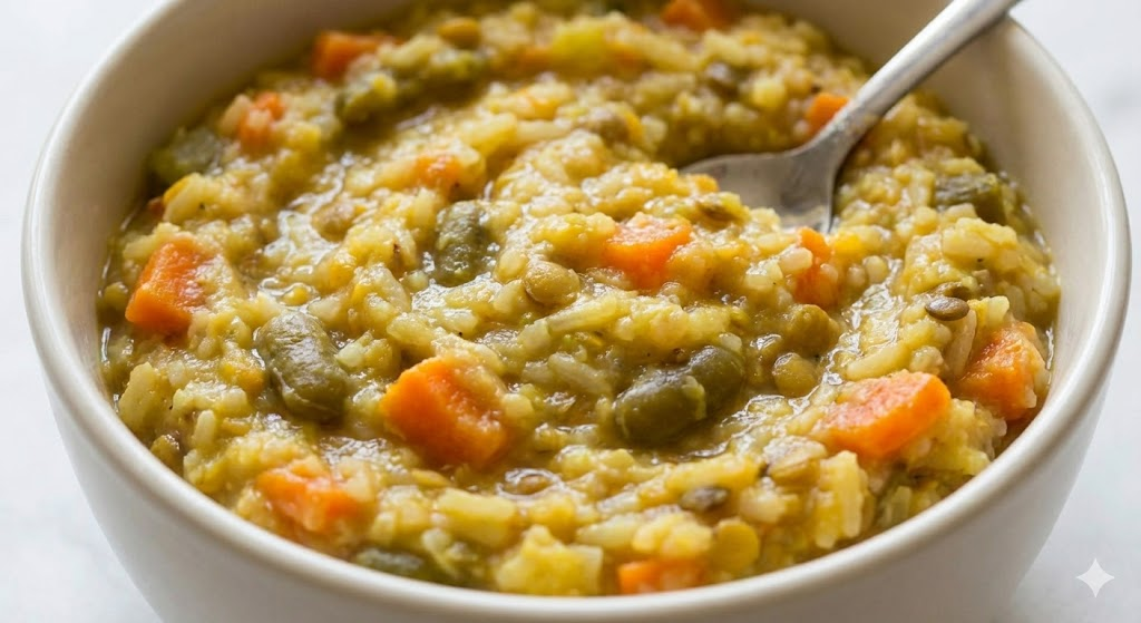 - Breakfast: चावल का दलिया (2–3 चम्मच)।